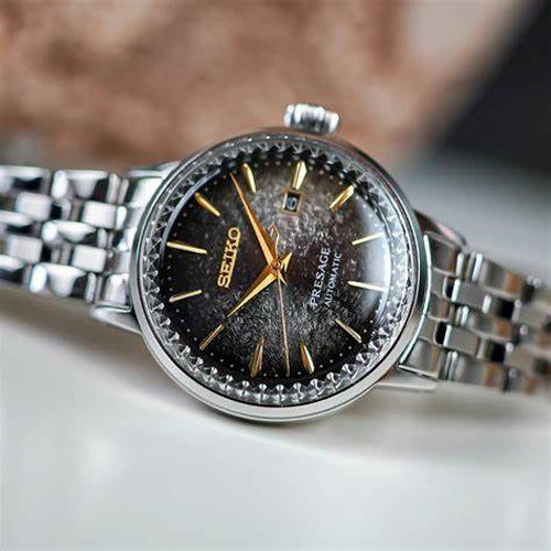 This collaboration between STAR BAR and Presage Cocktail Time has resulted in two exquisite watches that capture the essence of Tokyo at night. The watch dials are inspired by the "Night-time Tokyo" cocktail, crafted by Hisashi Kishi, the first recipient of Japan’s “Contemporary Master Craftsman” award in bartending.