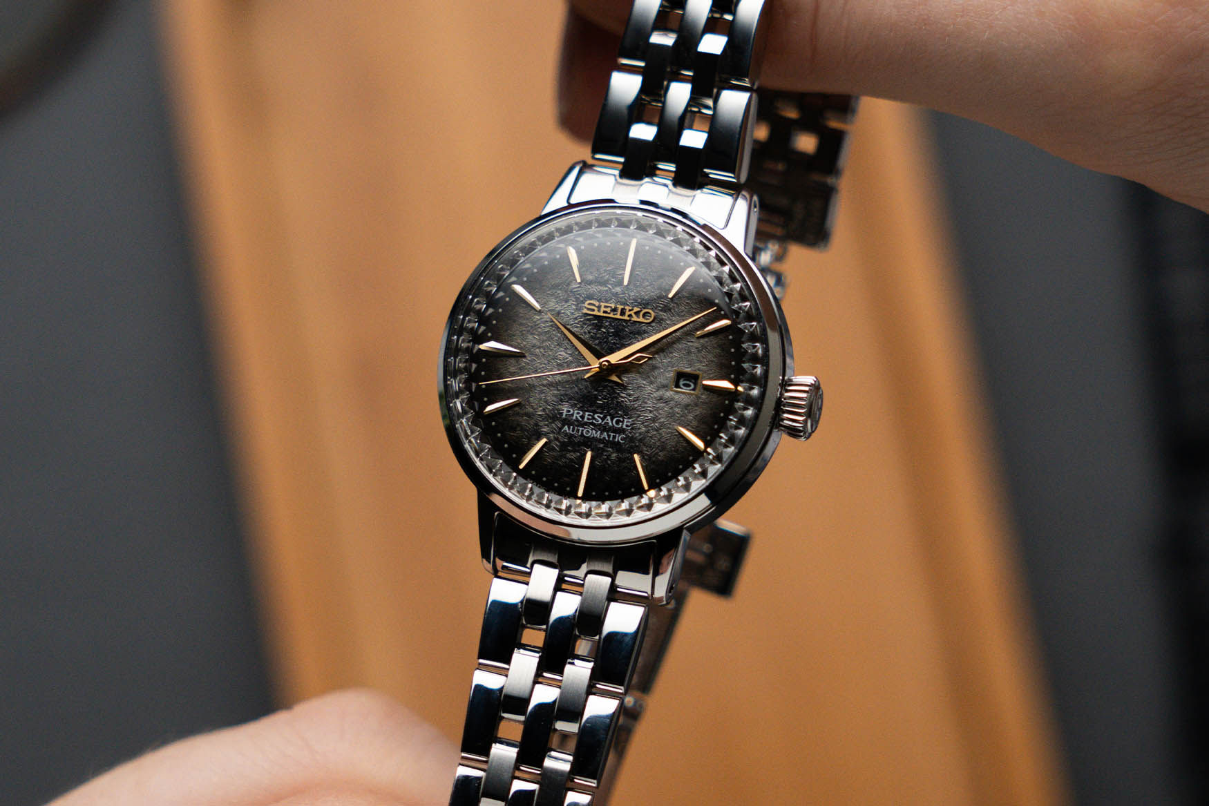 The Seiko Presage Cocktail Time collection designs are influenced by this Japanese tradition of finishing the working day off with a cocktail and a chat – with each timepiece named after drinks mixed by Hisashi Kishi, head bartender and owner of Star Bar in Tokyo’s Ginza area and a past winner of the International Bar Association World Championships.
